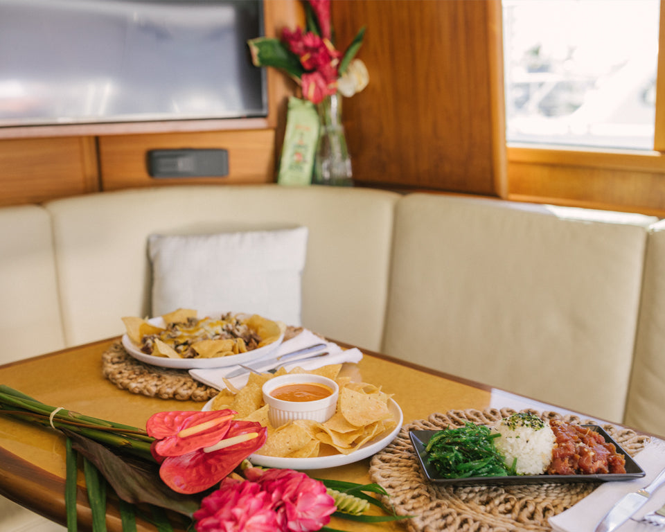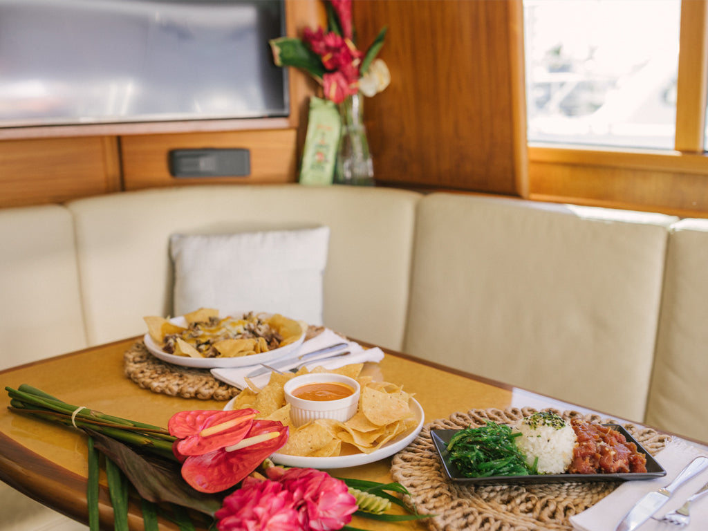 Dine in on the Kona Blue with our luxury dining experience. Holualoa Garden & Kitchen provides an extensive menu for all-day snacking, dining and libations aboard the Kona Blue.