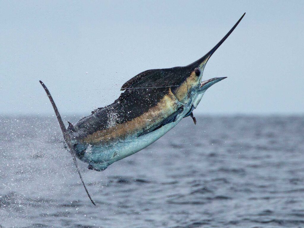 Depending on the time of year, you might hook into Dolphin (Mahi Mahi), Blue Marlin, Sailfish, Swordfish, Skipjack Tuna, Yellowfin Tuna, Wahoo, Albacore Tuna, Shortbill Spearfish, Black Marlin, Striped Marlin, and anything else that bites.